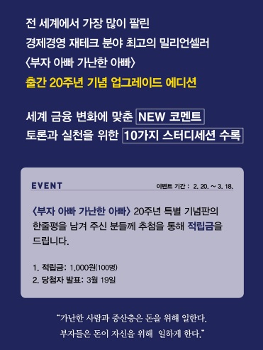 전 세계에서 가장 많이 팔린 경제경영서 ‘부자 아빠 가난한 아빠’ 20주년 기념 업그레이드 에디션 출간!