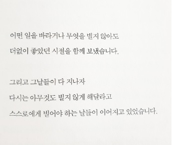 4. 『운다고 달라지는 일은 아무것도 없겠지만』은 ‘시인 박준’이라는 ‘사람’을 정통으로 관통하는 글입니다. 제 호흡 가는대로 총 4부로 나누긴 하였지만 그런 나눔에 상관없이 아무 페이지나 살살 넘겨봐도 또 아무 대목이나 슬슬 읽어봐도 우리 몸의 피돌기처럼 그 이야기의 편린들이 유기적으로 연결되어 있음을 확인하게 해주는 글입니다. 드러낼 작정 없이 절로 드러난 이야기의 어린 손들을 우리들은 읽어가는 내내 잡기 바쁜데 불쑥 잡은 그 어린 손들이 우리들 손바닥을 펴서 손가락으로 적어주는 말들을 읽자면 그 이름에 가난이 있었고, 이별이 있었고, 죽음이 있었습니다. 그러니까 가난이라는 생활, 이별이라는 정황, 죽음이라는 허망, 이 셋은 떼려야 뗄 수 없는 우리들 모두에게 바로 직면한 과제라 허투루 들리는 이야기가 하나도 없었습니다. 웬만하면 마주하려 하지 않았던, 가능하면 피하고만 싶었던 우리들의 민낯, 그 가난은 힘들고 또 힘들게 하고, 이별은 아프고 또 아프게 하고, 죽음은 슬프고 또 슬프게 하는 거니까요. 그럼에도 맞장을 뜨듯 이 삶의 곤궁 더미들을 미리 대면하면 좋을 이유가 우리 몸에 내성이라는 것을 생기게 함으로써 끝끝내 삶을 밀어 삶 너머로 나아가게 할 것을 아니까요, 그 원동력으로 삶과 죽음의 쳇바퀴를 더욱 자신 있게 굴리게 해 줄 테니까요. 우리가 왜 책을 읽어야 하나 하는 물음에 우리가 왜 삶을 살아야 하나 하는 물음이 답이 될 수 있을 거라는 자신과 확신, 이 책으로 말미암을 수 있었다니까요.