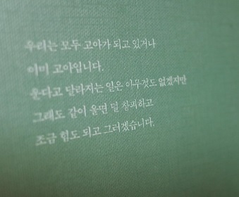 * 눈물로 뒤범벅된 얼굴이니 가난한 남매일지도 모르겠습니다. 눈물로 뒤범벅된 얼굴이니 이별을 앞둔 연인일지도 모르겠습니다. 눈물로 뒤범벅된 얼굴이니 죽음을 공유한 부부일지도 모르겠습니다.
