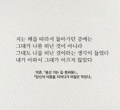 그렇게 '작고 소외된' 것들에 끝없이 관심을 두고 탐구해온 지난 4년, 이제 막 삼십 대에 접어든 이 젊은 시인의 성장이 궁금하다. 모름지기 성장이란 삶의 근원적인 슬픔을 깨닫는 것일 터, 이번 시집에 이 세계를 받아들이고 살아간다는 것, 그리고 그 안에서 마주하는 죽음의 순간들에 대한 사유가 짙은 것은, 박준 시인의 깊어져 가는 세계를 증거 할 것이다.