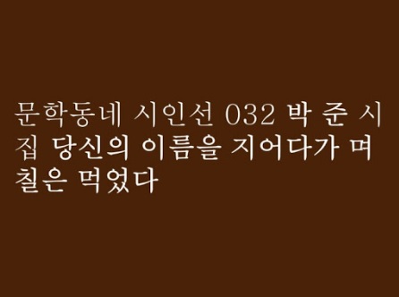 오늘은 베스트셀러 시 '당신의 이름을 지어다가 며칠은 먹었다' 박준 시집, 문학동네 시 리뷰입니다.