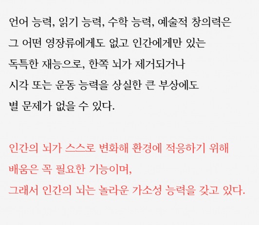 인간 특유의 재능들을 한 단어로 줄여야 한다면 '배움' 일 것이다