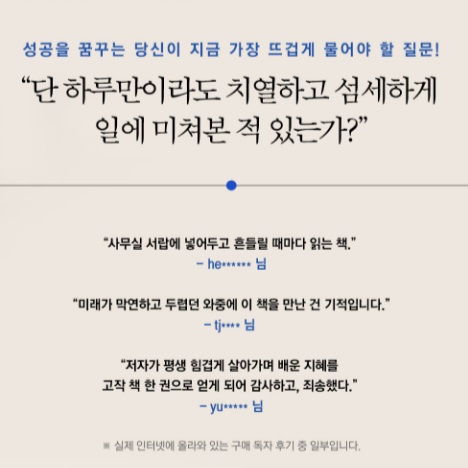 “미래가 막연하고 두렵던 와중에 이 책을 만난 건 기적입니다.” -TJ****