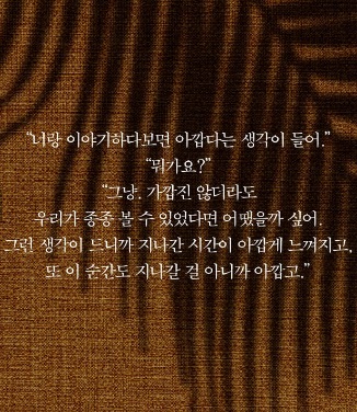 “‘나아지고 있는 걸까’라는 질문에 선뜻 그렇다고 답할 수가 없”(15쪽)는 시간을 보내며 희령에서의 생활을 이어가던 어느 주말, 지연은 집으로 돌아가는 언덕에서 한 할머니를 만난다. 지연과 같은 아파트 단지에 살면서 가끔 마주칠 때면 반가운 내색을 하던 분이었다. 오후의 햇살로 반짝이는 바다가 보이고 부드러운 바람이 부는 언덕 위에서 할머니는 뜻밖의 말을 꺼낸다.
