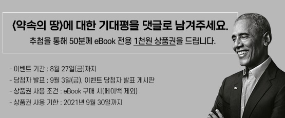 역대 대통령 회고록 중 최다 판매와 최고 선인세, 출간 첫날 90만 부 판매, 예약판매 즉시 아마존 종합 1위, 26개 언어 출간 계약 등 여러 기록을 남기며 전 세계 화제작으로 떠오른 미국 제 44대 대통령 버락 오바마의 회고록 『약속의 땅』 한국어판이 드디어 출간된다. 오바마는 이 책에서 미국 최초의 흑인 대통령이 되어 백악관에 입성하기까지의 과정과 임기 첫 2년 반 동안의 고군분투를 놀랍도록 솔직하고 사실적으로 담아냈다. 그런가 하면 이례적일 만큼 내밀하게 자신의 선택과 사고과정을 곱씹는다.