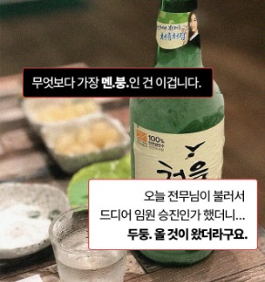 김 부장 이야기는 두 개의 렌즈로 들여다보아야 한다. 현미경과 망원경, 무엇으로 들여다보느냐에 따라 보이는 바가 다르고, 입안에 도는 맛이 다르다. 현미경으로 들여다보면 웃음과 눈물이 난다. 내 상사의 이야기, 우리 회사의 이야기란 생각에 웃음이 터졌다가 결국엔 내 아버지의 이야기이자 나의 이야기이란 깨달음에 눈시울이 뜨거워진다. 온라인 연재로 먼저 이 글을 접한 이들 중 상당수가 “왜 눈물이 나죠?” “나이 마흔 넘어 울컥하네요”라고 입을 모아 얘기한 것은 모두 이 같은 이유 때문일 것이다.