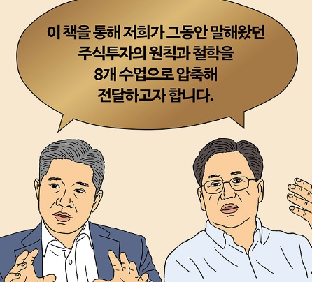 1부는 강방천의 주식 수업을 주제로 그가 고수하는 평생의 투자 원칙과 투자 성공 사례를 8개의 수업으로 풀어냈다. 마찬가지로 2부에서는 대한민국 모두의 금융문맹 탈출을 위해 존리 대표가 그의 투자 철학과 조언을 8개의 수업으로 압축해 정리했다. 어려운 숫자 없이도 일러스트와 이야기로 술술 읽을 수 있어 부모와 자녀가 함께 읽는 투자 입문서로 적합하다.