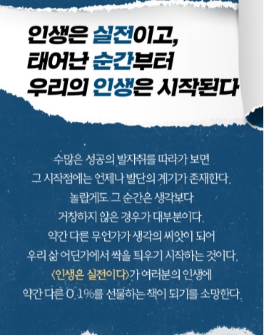안타깝지만, 인생에 예행연습은 없다. 졸업도, 취업도, 결혼도, 육아도 그 무엇 하나 연습해 볼 수 없다. 그래서 실전이 중요하다. 뜬구름 잡는 소리가 아니라, 온몸으로 겪어내야 할 진짜 현실을 이야기해야 한다.