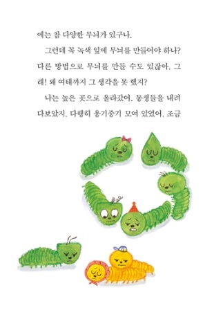 상상력의 확장 애벌레가 주는 용기의 메시지를 어린이들에게 들려주고 싶네요.