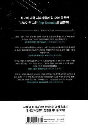 『엘러건트 유니버스』『우주의 구조』등 수 년 마다 명저를 집필하며, 칼 세이건 이후 최고의 ‘대중 과학 전도사’로 불린 브라이언 그린이 10여 년 만에 새 책을 썼다. 미국 현지에서는 『Until The End of Time』이란 제목으로 2020년 출간되어 즉각 아마존 과학 분야 1위를 차지하는 등 이미 크게 화제된 바 있다. 미래엔 와이즈베리는 카이스트 출신 과학전문 번역가 박병철 박사에게 의뢰해 장장 1년여에 걸친 고된 번역작업 끝에 한국어판 『엔드 오브 타임』을 출간했다.