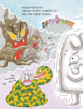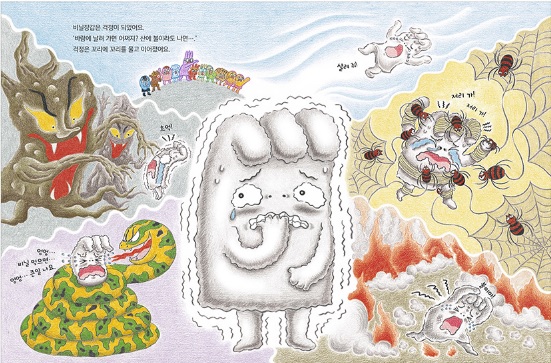 아직 여물지 않은 몸과 마음으로 세상을 알아 가자면 걱정과 두려움에 발이 묶일 때가 많습니다. 온몸이 얇고 투명한 비닐이라면 더 말할 것도 없겠지요. 비닐장갑은 장갑 초등학교에서 제일가는 겁쟁이입니다. 오늘은 한 학기에 한 번 별빛 캠프가 열리는 날이라, 장갑 친구들은 다들 장갑산에 올라가 별을 볼 생각에 잔뜩 들떠 있습니다. 하지만 비닐장갑의 머릿속에는 온통 걱정뿐입니다. ‘바람에 날려 가면 어쩌지? 산에 불이라도 나면….’ 걱정은 꼬리에 꼬리를 물고 이어집니다.