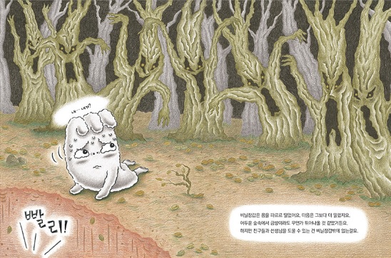 그런데 정말 걱정하던 일이 일어나고 맙니다. 말썽꾸러기 쌍둥이 장갑이 하나밖에 없는 손전등을 망가뜨린 것이지요. 어두운 산길을 더듬더듬 내려가던 선생님과 장갑 친구들은 그만 낭떠러지로 굴러 떨어지고 맙니다. 몸이 가벼운 비닐장갑만 팔랑팔랑 날려가 무사할 수 있었지요. “비닐장갑아, 아무래도 네가 가서 어른들을 불러와야 할 것 같아!” 선생님이 애타게 소리치지만, 비닐장갑은 더럭 겁부터 납니다. 어두운 숲 속에서 금방이라도 무언가 튀어나올 것만 같았거든요. 하지만 선생님과 친구들을 도울 수 있는 건 비닐장갑뿐인 걸요. 겁쟁이 비닐장갑은 혼자 산을 내려가 구조대를 불러올 수 있을까요? 《용기를 내, 비닐장갑!》은 걱정과 두려움이 앞서 좀처럼 행동하지 못하는 어린이의 마음을 환한 빛으로 채워 주는 그림책입니다. 아니, 나 혼자만을 위해서라면 결코 해내지 못했을 일을 선생님과 친구들을 위해 기어이 해내고야 마는 비닐장갑의 마음이 이미 세상을 밝히는 빛인지도 모르겠습니다.