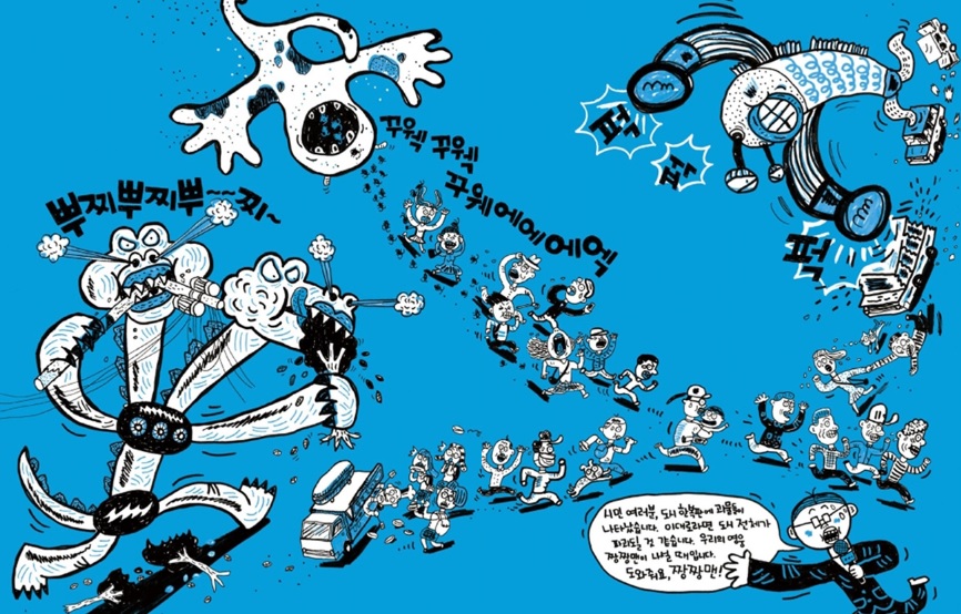 발칙한 상상력, 유쾌한 만화적 연출이 돋보이는 그림책.