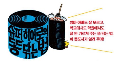 《슈퍼 히어로의 똥 닦는 법》은 새삼 누구에게 물어보기는 부끄럽지만 살아가는 데 꼭 필요한 똥 닦는 법에 대해 친절하고 명쾌하게 알려 주는 책입니다.