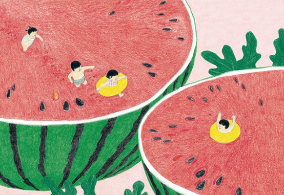 “여름 햇볕이 한창 뜨거울 때 수박이 다 익었습니다. 드디어 수박 수영장을 개장할 때가 왔습니다.”